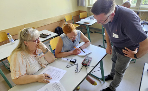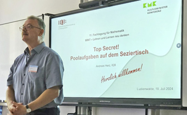 Überwältigendes Interesse gab es für den Workshop von Andreas Herz, Koordinator Mathematik am Institut zur Qualitätsentwicklung im Bildungswesen. Schon der Titel versprach Spannendes: „Top Secret! Poolaufgaben auf dem Seziertisch.“ Wie entstehen die gemeinsamen Abituraufgaben der Länder und wie gelangen sie in die Abiturprüfungen? Ziel des Workshops war es, die Aura des Mystischen, die sich in den vergangenen Jahren mit den Aufgabenpools des IQB verband, im Wortsinne aufzuklären. Die angeregten Diskussionen während des Workshops zeigten in jedem Fall, wie sehr diese Initiative des IQB von den Teilnehmerinnen und Teilnehmer geschätzt und die angestrebte Wirkung in Luckenwalde erreicht wurde.