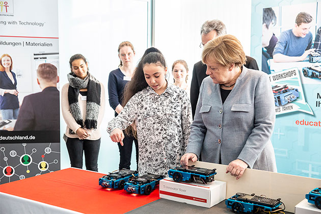 Damit Mädchen in MINT erfolgreich sind, hat die deutsche Bundesregierung zum Beispiel einen speziellen Girls‘ Day ins Leben gerufen. "2019 durften drei unserer Schülerinnen Bundeskanzlerin Angela Merkel zeigen, dass Mädchen genauso gut sind wie Jungs", sagt Mirco Tewes, Lehrer am Primo-Levi-Gymnasium in Berlin. "Ihre Vorführung drehte sich um das Thema '..und Mädchen können nicht einparken? ' Um ihren Standpunkt zu beweisen, programmierten sie unter Einsatz der TI Technologie ein Roboterfahrzeug mit Einparkhilfe, um zu zeigen, wie autonomes Parken funktionieren kann. Die Erfahrung könnte sich tatsächlich auf die Berufswahl der Mädchen ausgewirkt haben. Eine von ihnen entschied sich für ein Studium der Biomedizintechnik, eine Schülerin macht zunächst ein Freiwilliges Soziales Jahr und das dritte Mädchen studiert Mathematik in Berlin.''