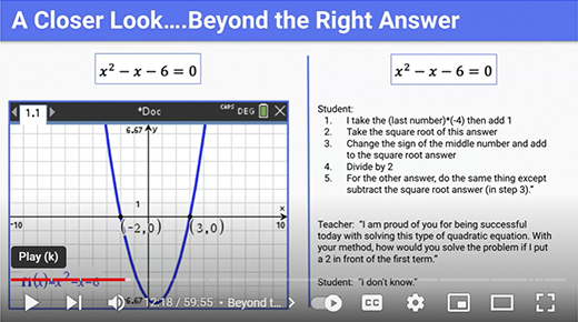 Is the answer to a mathematical question the end of learning? How might you use TI technology to move beyond the answer? Discover strategies for getting students thinking beyond the right (or wrong) answer.
