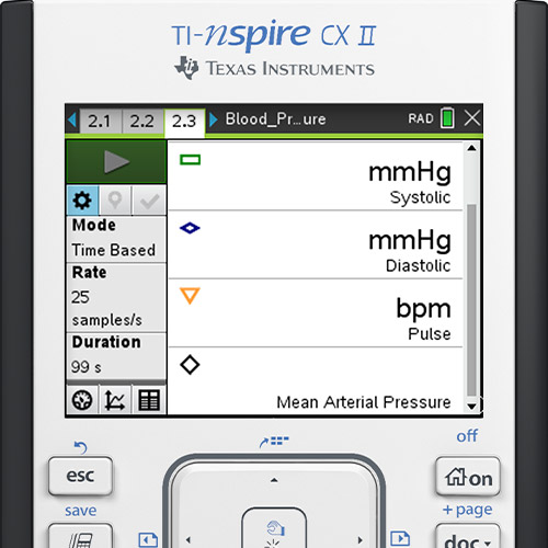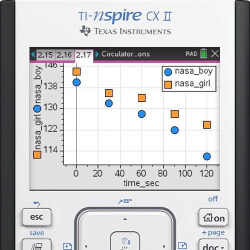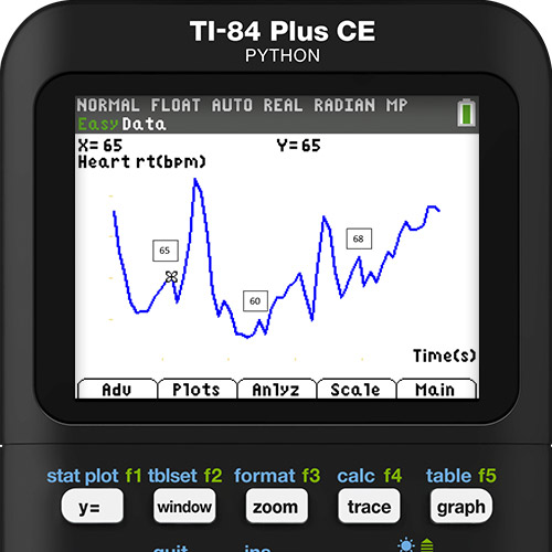 Here are three activities to choose from related to heart rate. The first two use a heart rate monitor by Vernier Science Education® with either a TI-84 Plus CE or TI-Nspire CX graphing calculator. The third is a simulation developed with NASA where probeware is not needed.